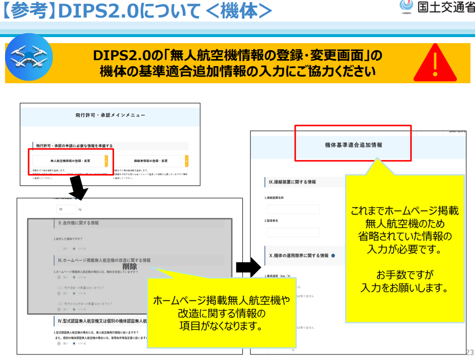 【重要】ホームページ掲載機体を使用している場合、12月18日以降は詳細な書類提出が必要になります。