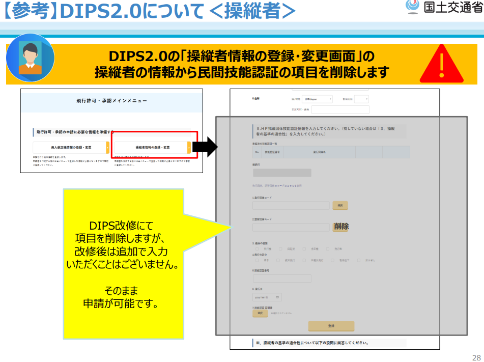 • DIPS2.0から「民間技能認証」欄が削除